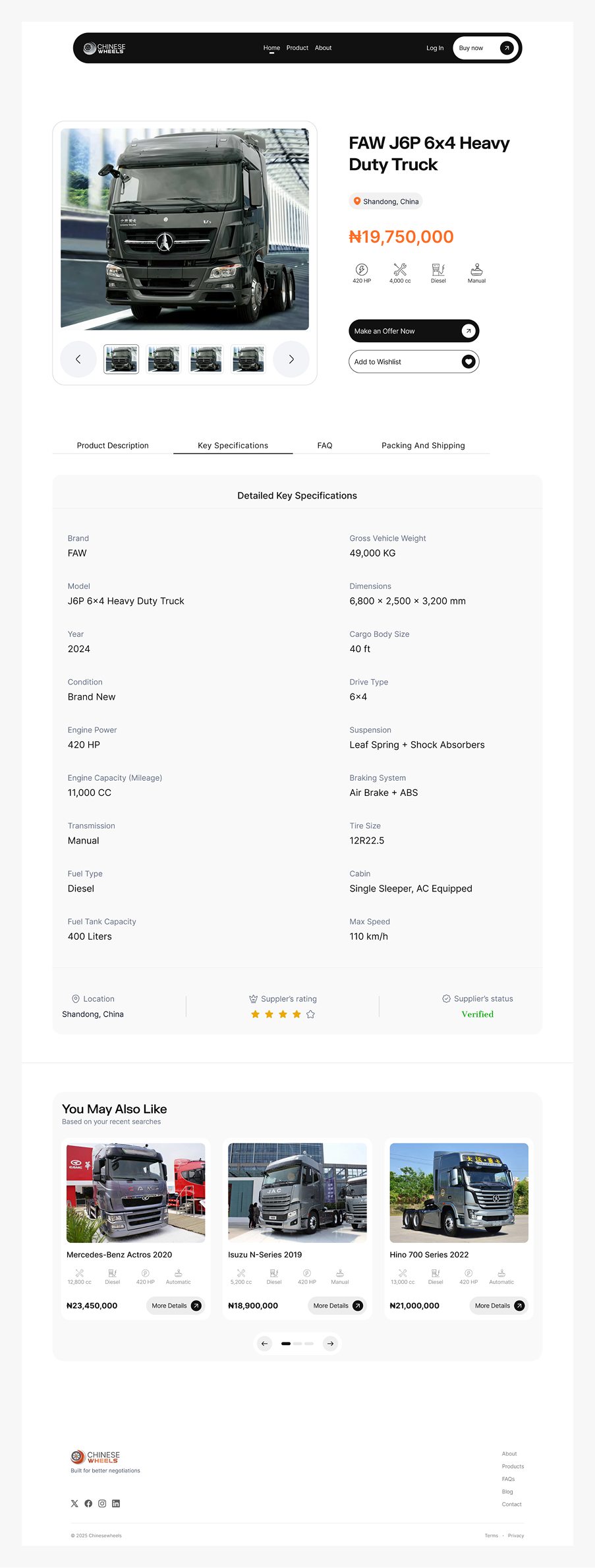 A B2B marketplace for discovering and buying trucks from verified suppliers. Designed with clearer listings, better search, and an easier buying experience.