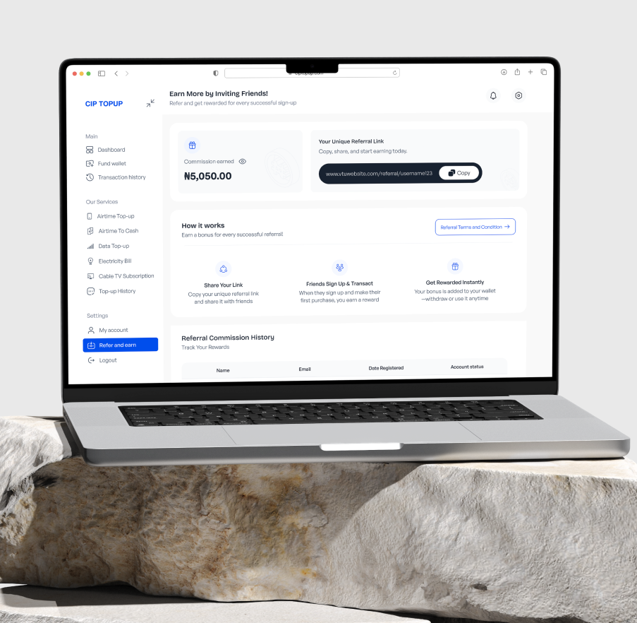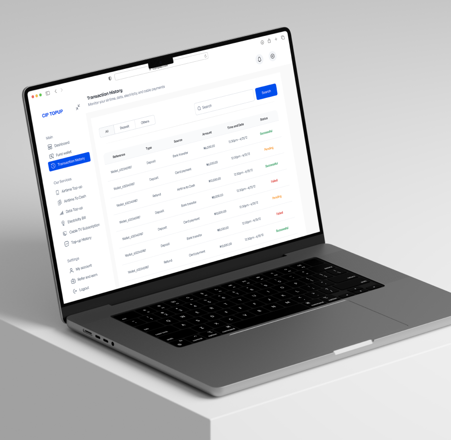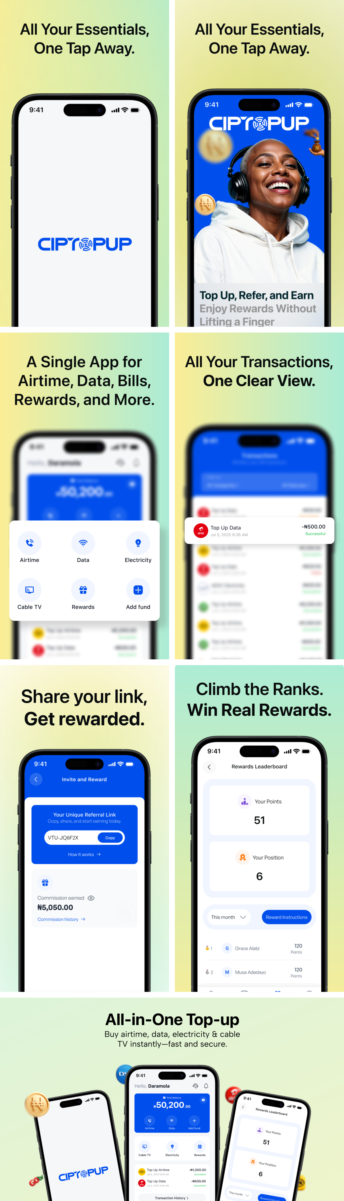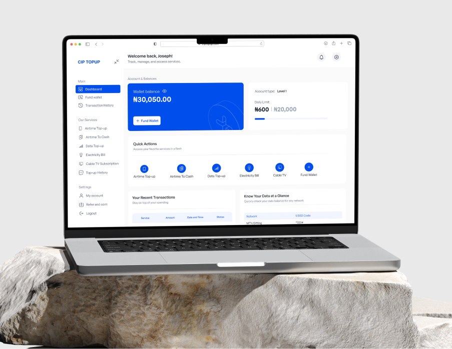 CIP TopUp is a platform that lets people buy airtime, data, electricity, and cable TV across major Nigerian networks.